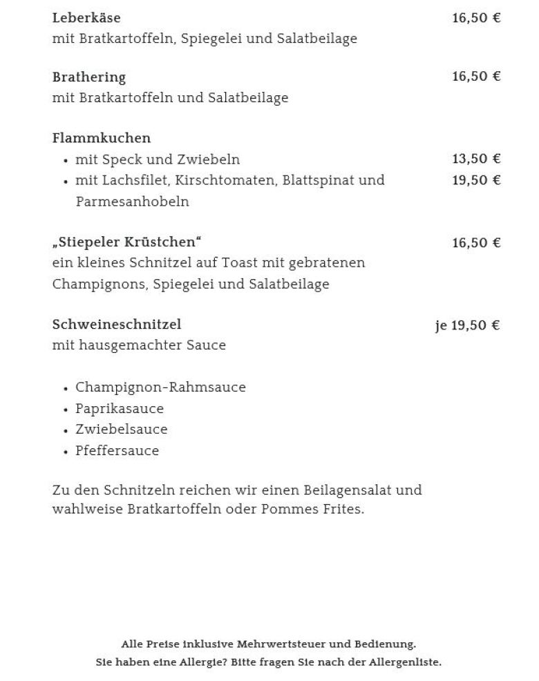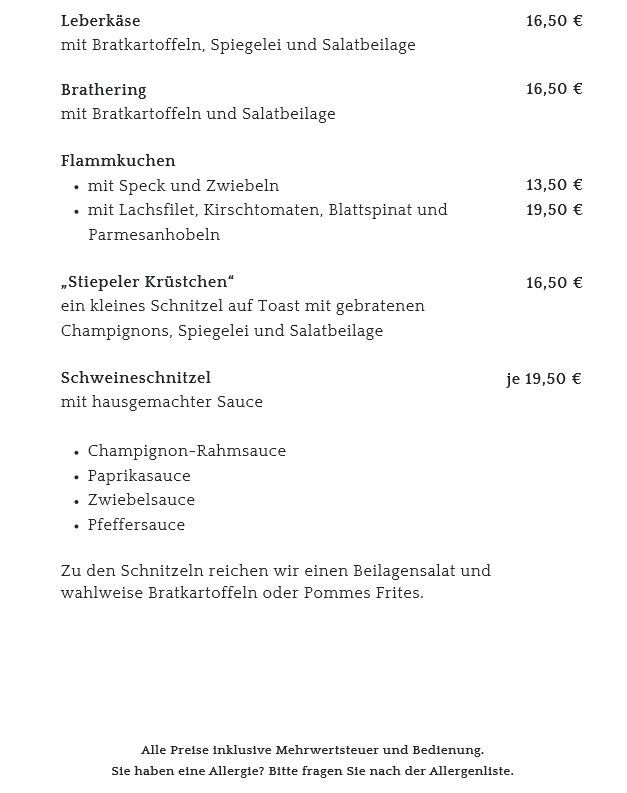 alle Preise einschl. Mehrwertsteuer und Bedienung